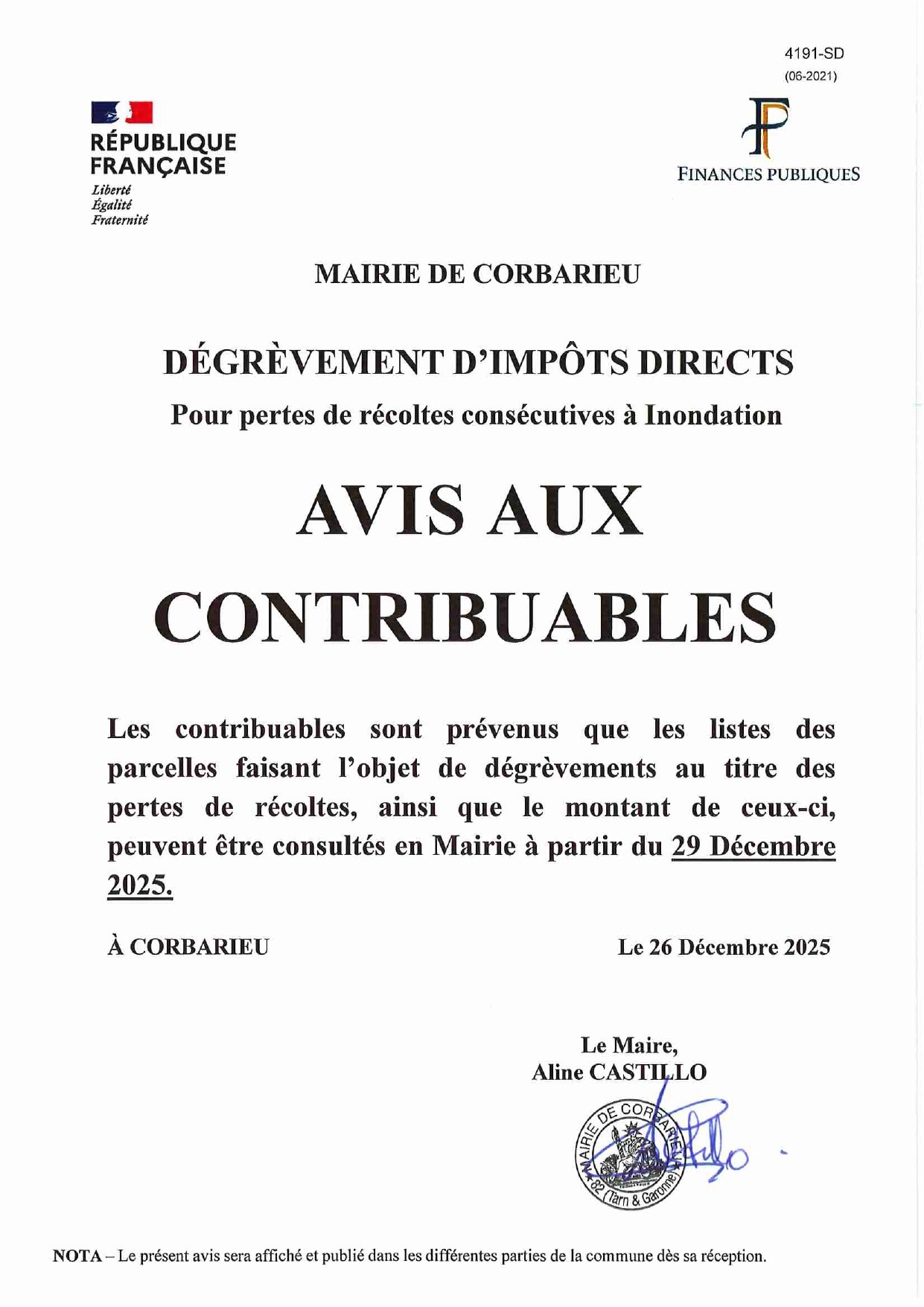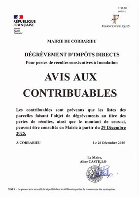 Dégrèvements d'impôts directs pour pertes de récoltes consécutives à inondation