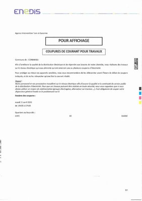 Coupures de courant pour travaux