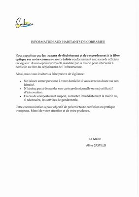 INFORMATION AUX HABITANTS DE CORBARIEU