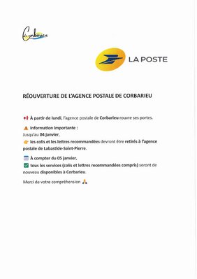 Réouverture de l'agence postale dès lundi 22 décembre 2025