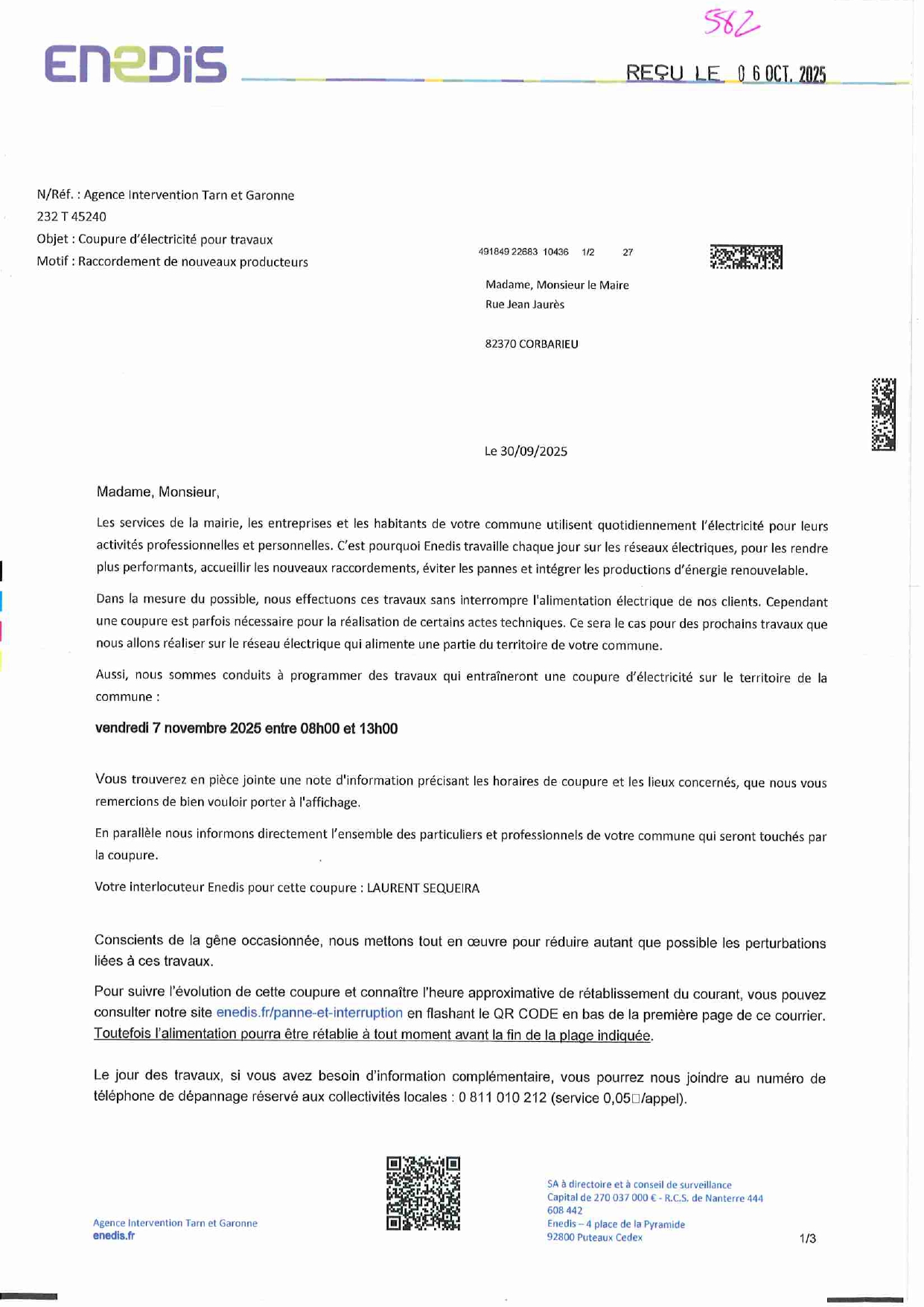 COUPURES DE COURANT POUR TRAVAUX