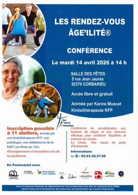 CONFÉRENCE LE MARDI 14 AVRIL 2026 A 14H00 A LA SALLE DES FÊTES DE CORBARIEU
