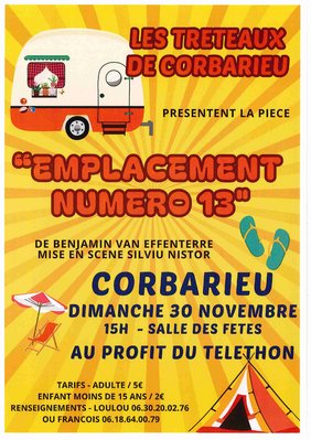 LES TRETEAUX DE CORBARIEU PRESENTENT LA PIECE "EMPLACEMENT NUMERO 13" le Dimanche 30 Novembre à 15h